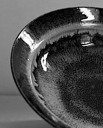 The “Floating Blue” (also called Blue Hare’s Fur) is a spectacular glossy glaze. The term ”Floating” comes probably from the blue cobalt colored surface that appears to float on a translucent glossy brown layer. This layer is visible where the color breaks to brownish hues on thinner glazed sections in the blue colored surface.