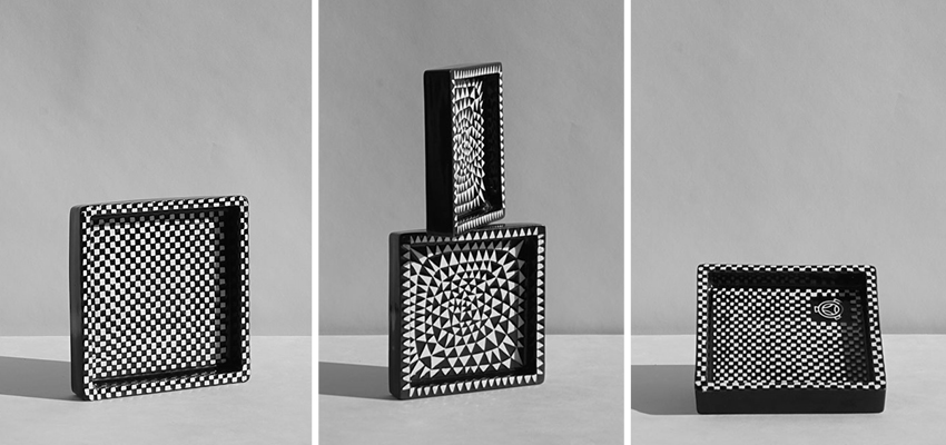 Besides, Stig Lindberg designed and produced the “DOMINO” Series in 1954 for the Gustavsberg factory and launched it during the H55 exhibition, where he made his international debut. The artware series consisted of several vases and dishes, ashtrays and cigarette cups. The objects came with geometric shapes, stylistic relief patterns and were first produced in black & white colours. Later, grey, brown and light blue tones were added to the collection. Black and white dishes and a cigarette cup adorned with the H55 logo could be purchased as souvenirs at the exhibition.