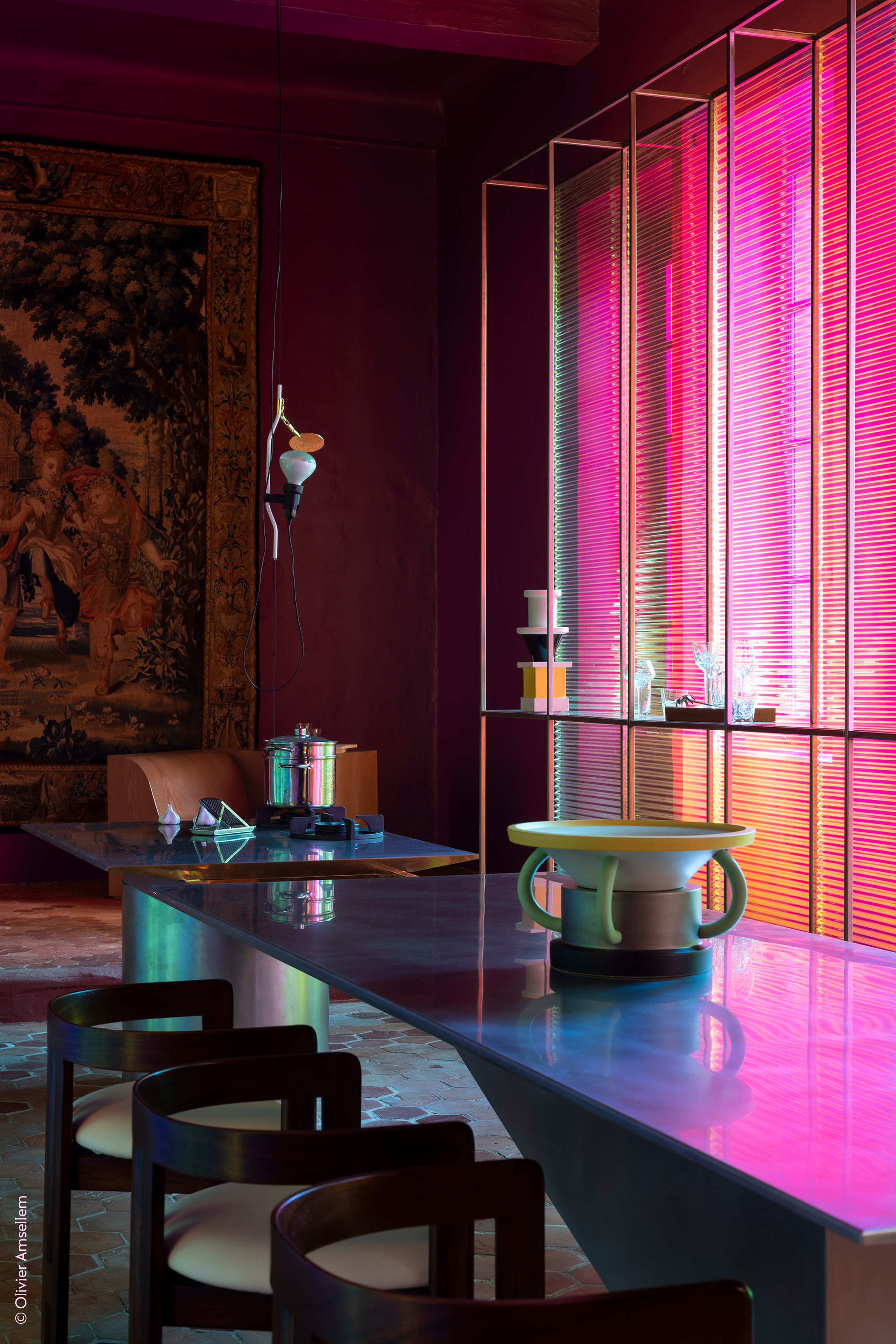 Rodolphe Parente certainly loves bringing people together - oh, yes he does! He is also a very talented interior designer which has led the Design Parade Toulon to award him the presidency of the 2022 edition. What a joy when Rodolphe invited us to create a print for the occasion, the result is an electrified reinterpretation of the pleated material created with Maison Lemarié and Les Ateliers Lognon.