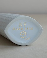 The medium slim vase is an early rare and limited edition produced for Christmas (Julen in Swedish) in 1952 / Impressed and Stamped “Gustavsberg with Anchor, Sweden”