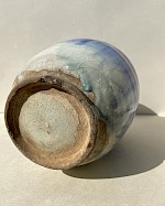 White slip (liquid clay) with blue slip decoration under transparent glaze