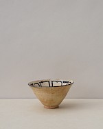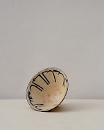 White slip (liquid clay) with black slip decoration under transparent glaze.