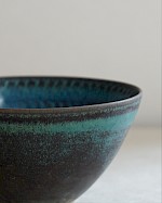 Stig Lindberg has mastered here this impression of oxidized metal by applying this unique glaze on stoneware, mimicking the “vert-de-gris” color you usually see on corroded cooper or bronze.